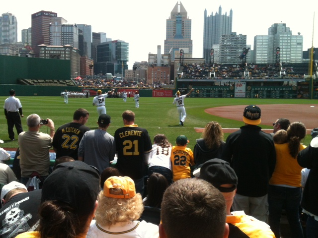 At 9:45 we headed for the game. I got lost (expected) and by 10:30 we found a parking lot that was right near the entrance to 376. (Escape is key for ball game parking.) We walked to the stadium and bought our tickets, then to kill time grabbed some food in a sports bar. There we ordered pot roast nachos, which were so good I was going to other tables and trying to talk people into ordering them. We gobbled these up and I washed them down with a local beer that was hoppy hoppy hoppy.