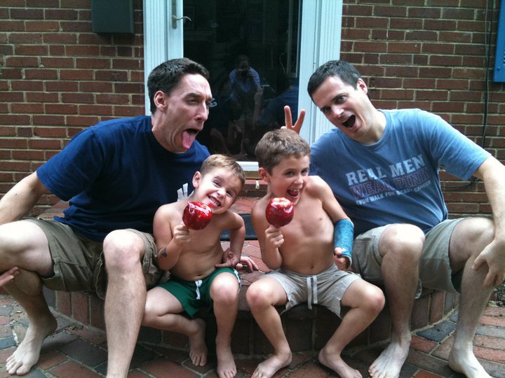 Tucker had a king-sized bed on his back porch, and the three of us slept out there. That morning I remember waking up being so happy to have a boy snuggling up on each side of me. Then Jack turned over and blasted me in the nose with his cast (he had a broken wrist). We walked to a diner for breakfast. When we came back we found Tucker in the back setting up a badmitton set he’d bought at a garage sale. After hours of that, Tucker broke out the candy apple kit and soon my boys were so sticky they could have climbed the side of Tucker’s house like geckos. (At this point, my boys were full-on Tucker fans.)