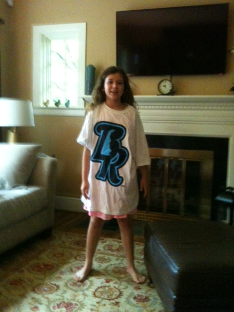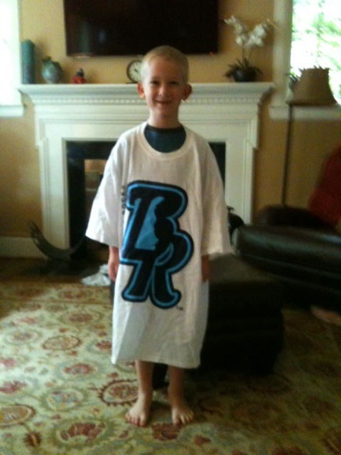 Well…curve ball in the form of rain. First off, rain made for bad traffic. Which meant we didn’t get there in time for autographs and they weren’t letting kids on the field. We got shirts…but all 1000 of them were XL adult size.