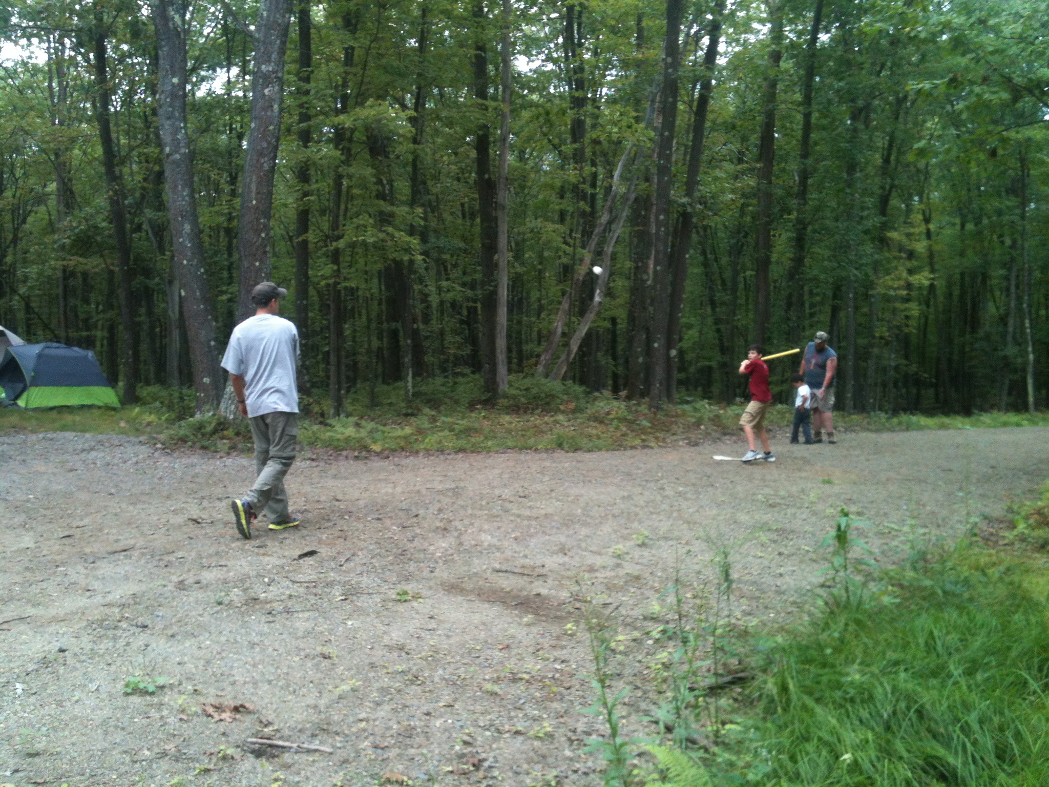 I found the Lackawanna State Forest in Pennsylvania. It was centrally located for all of us, free to camp in, and when I made reservations they actually gave me the combination to a gate that led us down a dirt road to a remote campsite. Fire pit, tent area, picnic table, plenty of wood to collect, and no gomers for miles. The trip was a go. Our friend Skinny and his son, Evan, agreed to join us. Hal decided to bring his 4-year-old nephew, Niko. We were ready for adventure.
