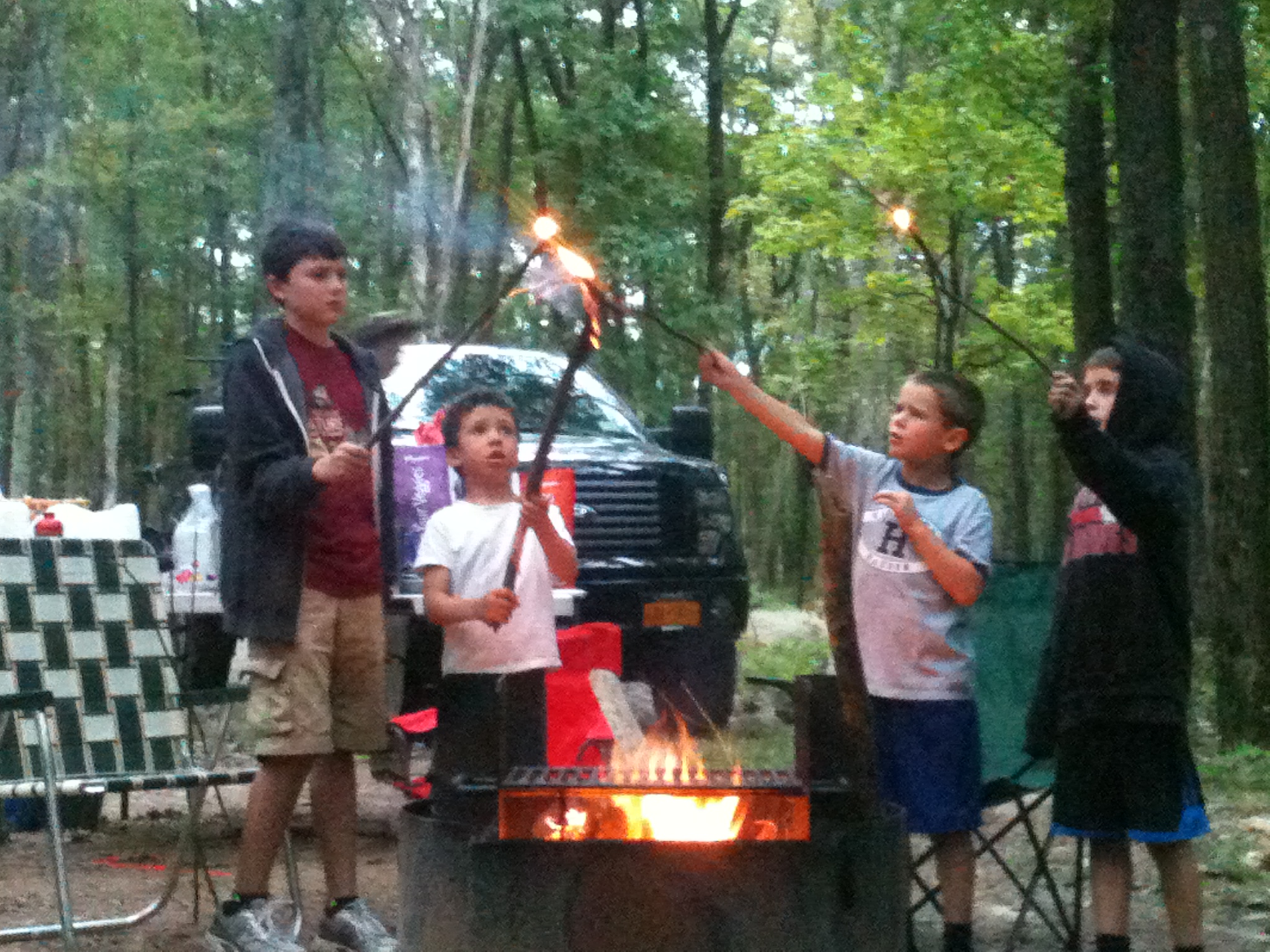 Four boys around the fire.