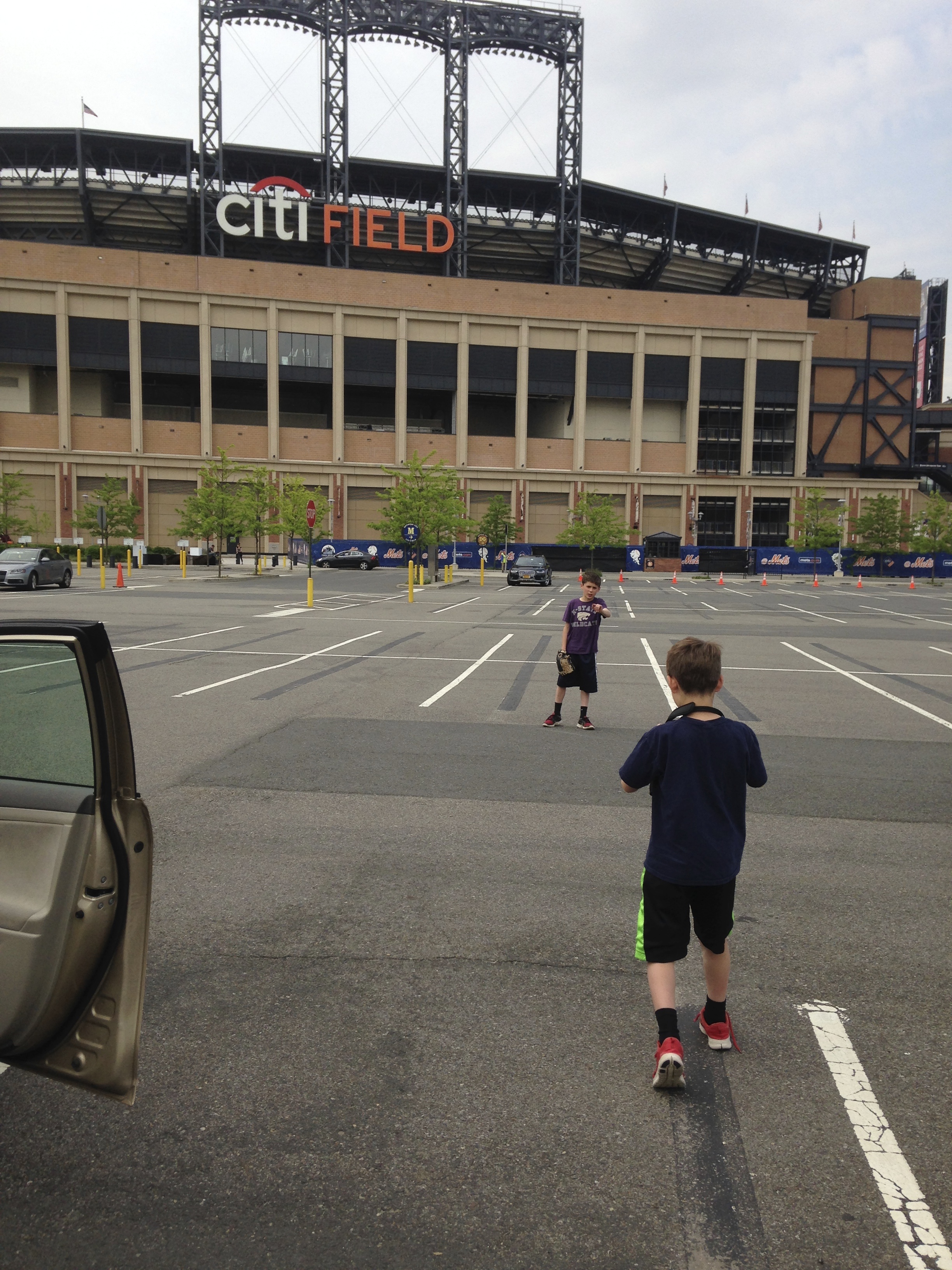 90 minutes later we crossed into New York, slid over into Queens, looped around and around the bridge ramps until it rolled us right outside of the gorgeous stadium. We got into lot G (VIP parking), Alex took a desperate 4-minute pee on the curb, and then we headed towards Citi Field and our Mets adventure.