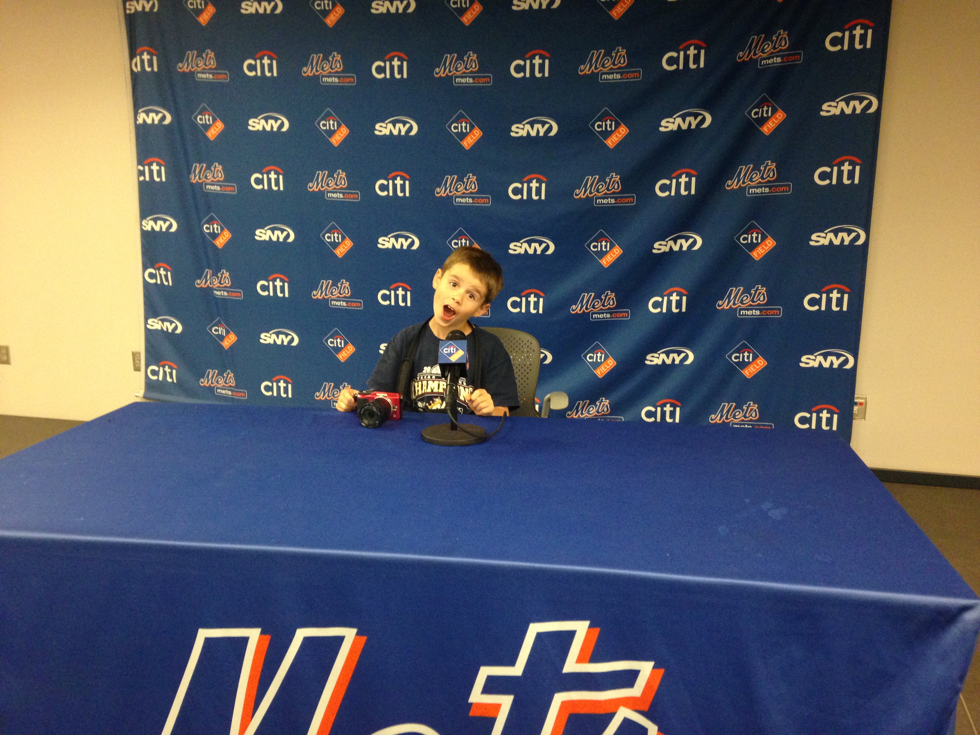 Soon it was the press conference. Mets manager Sandy Collins came in with a crowd of reporters. And for the next 15 minutes we got to watch them fire questions at him and listen to him banter back and forth. Jack was captivated and Alex fired off a solid 150 photos at least. Very very cool.