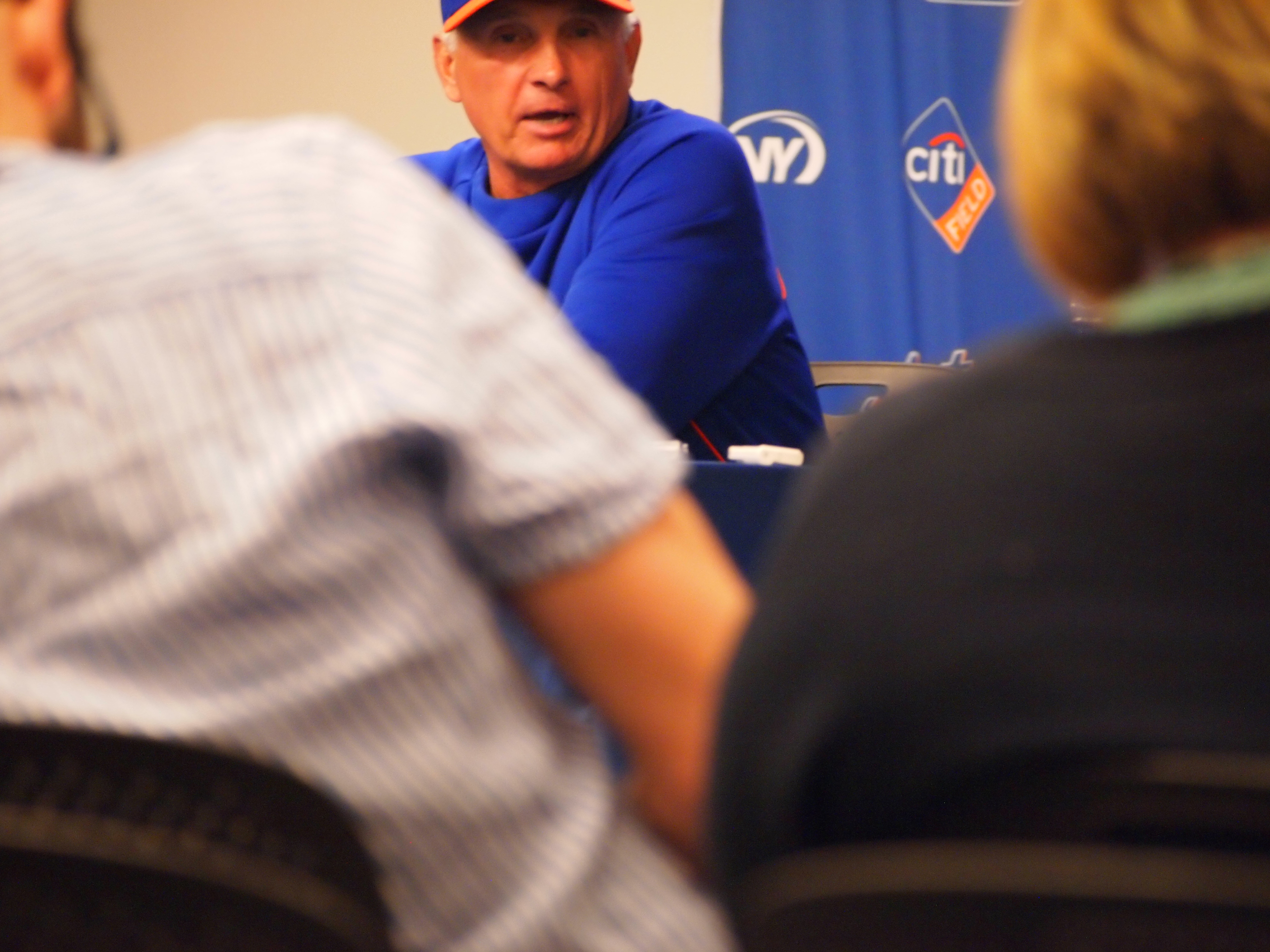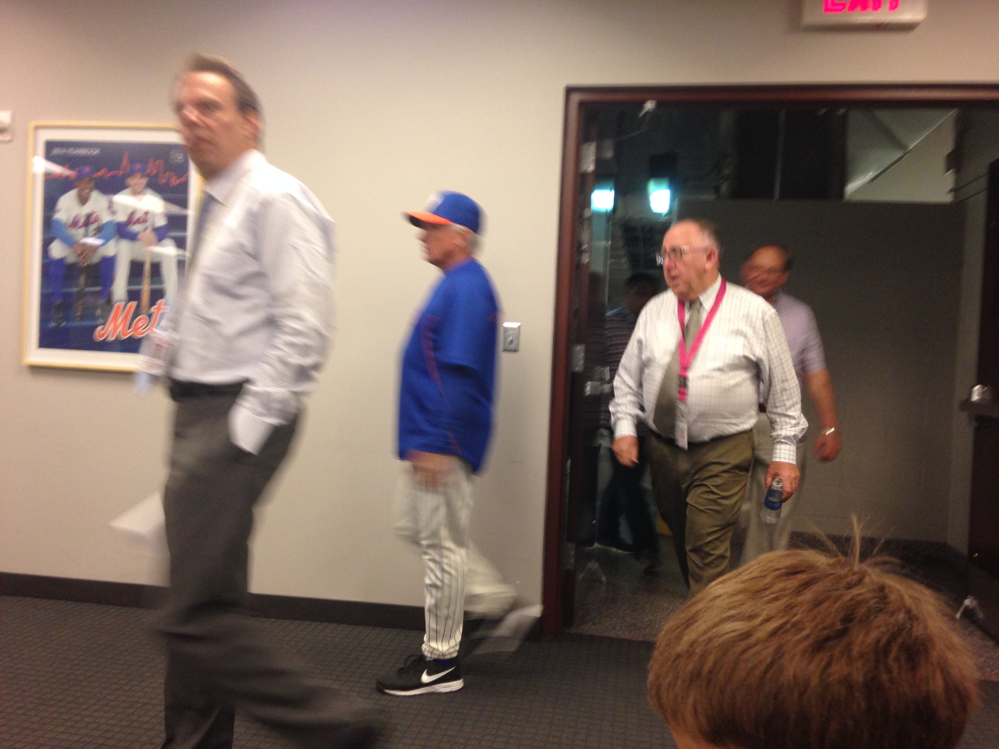 I told him we were staying, but that this wasn’t about free tickets at all. I had no problem paying for tickets. He said he’d see if there were any tickets left. But given it was the Mets on a Wednesday night with a 50% chance of rain…I felt pretty good about that. Then Jonathan said he’d be back for the press conference and left.