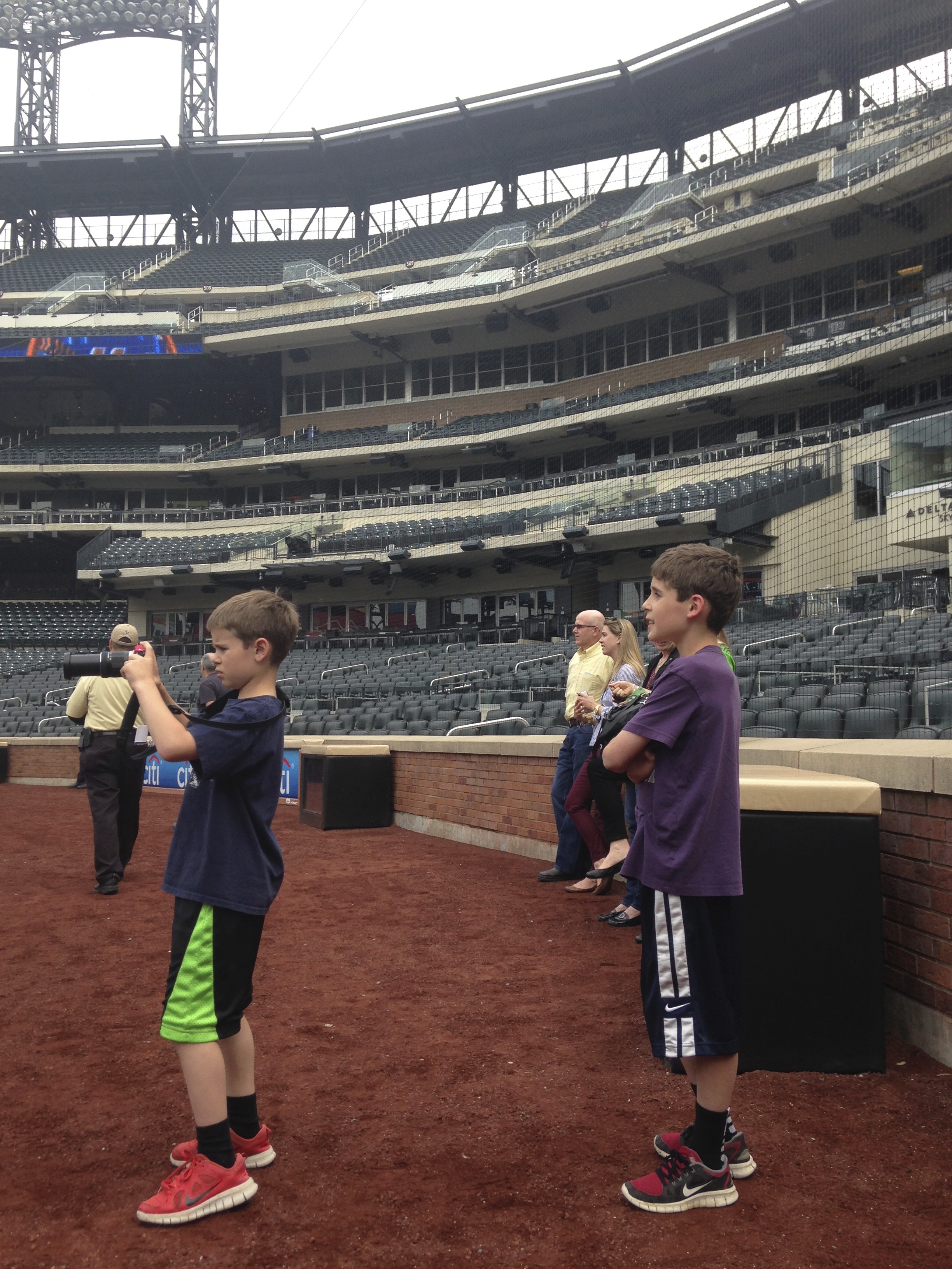 Utter insanity. We were on Citi Field. Not in Citi Field – on Citi Field. David Wright and David Murphy were 10 feet away taking batting practice. Curtis Granderson was stretching over to the left, not 20 feet away. Holy moly mackerel flaming shitballs. It was Mets, a security guard, and us.