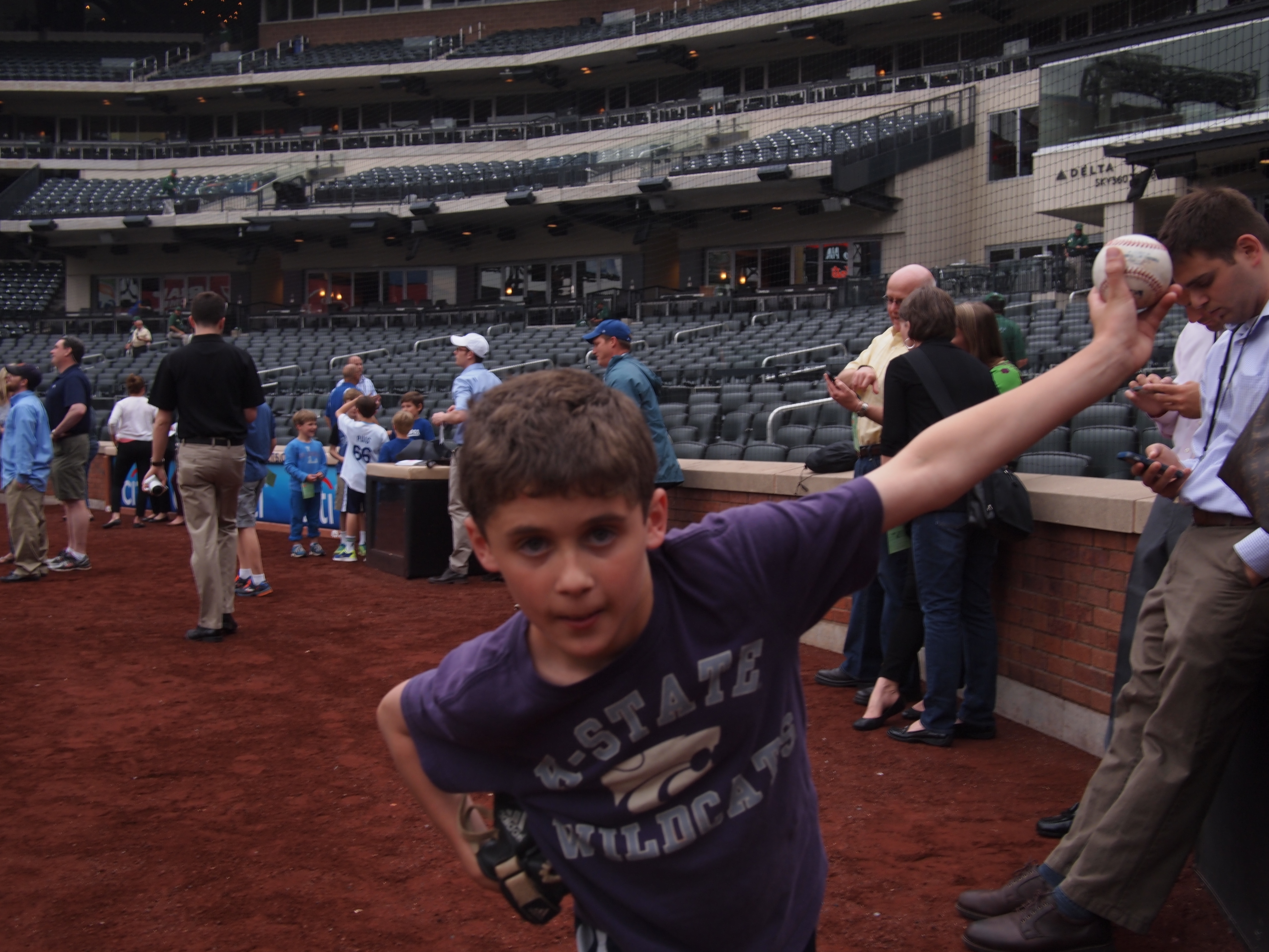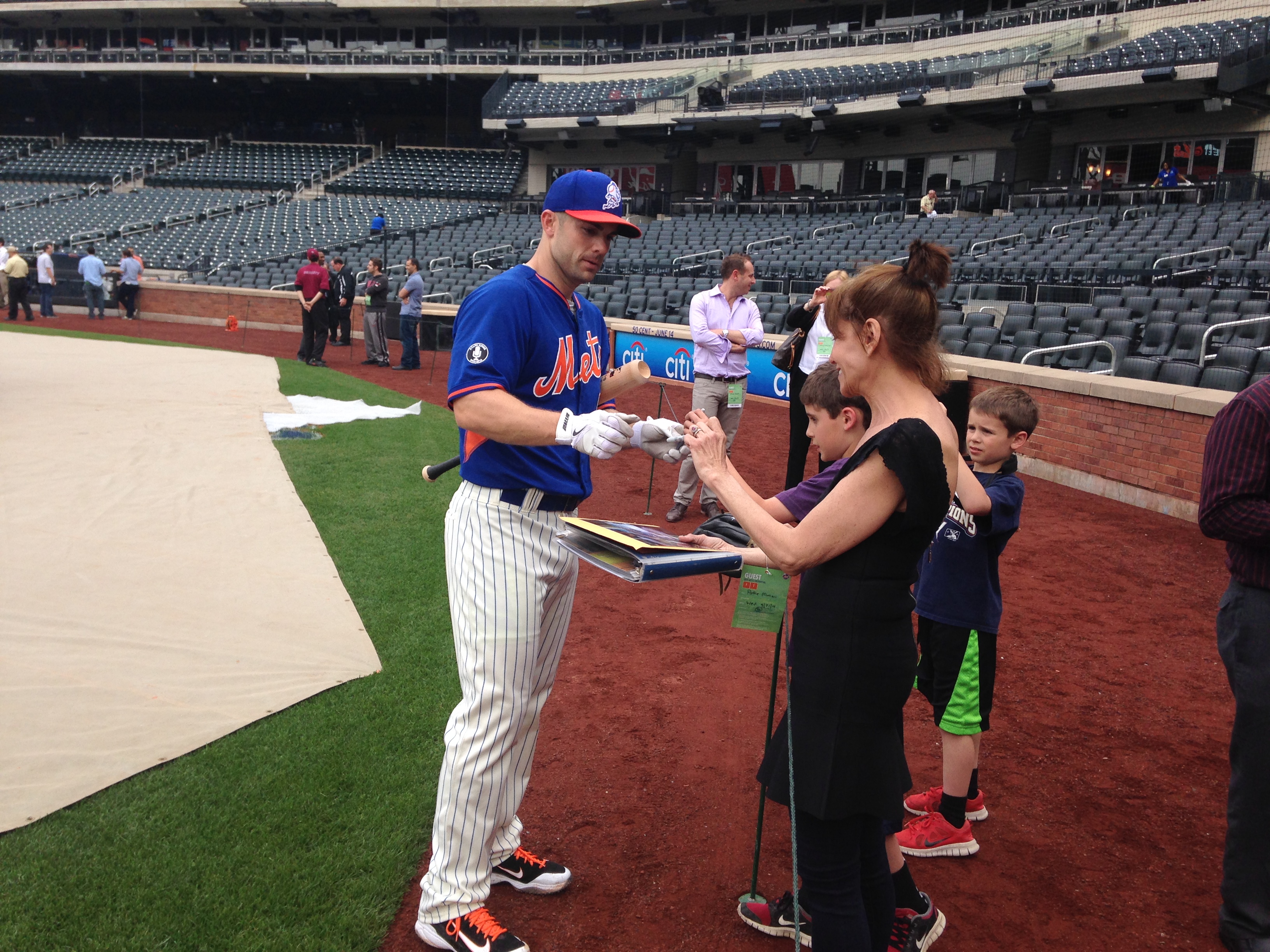 Jack hit the Jackpot. He got David Wright (Mets marquis 3rd baseman). He got Curtis Granderson (former Yankee, just signed for 4 years/60 million). He got a solid 8 Mets players to sign his glove. They even gave him one of the balls. It was awesome.