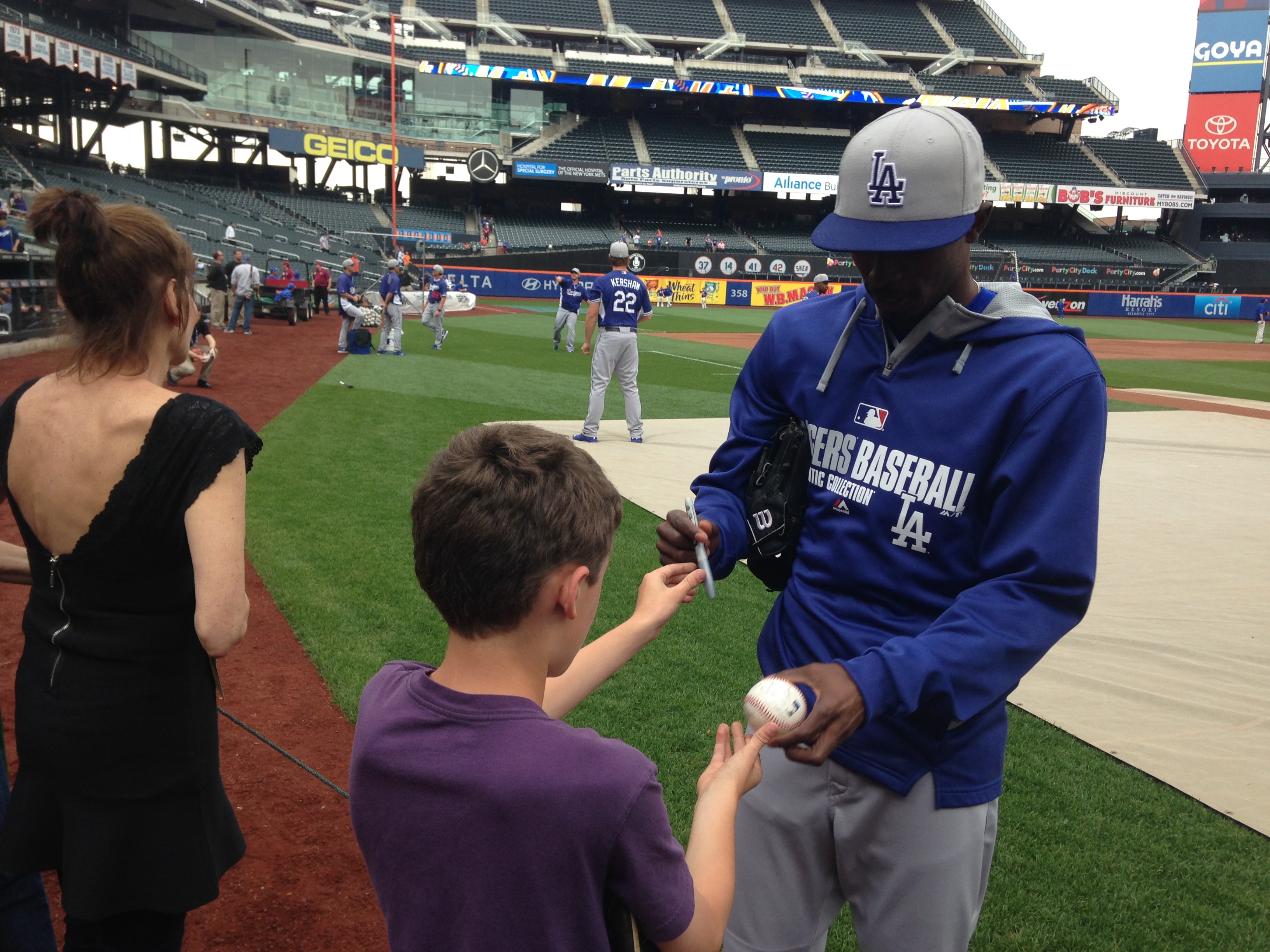 “This guy put his glove on his head to sign autographs.” [Dad note: that’s Clayton Kershaw]