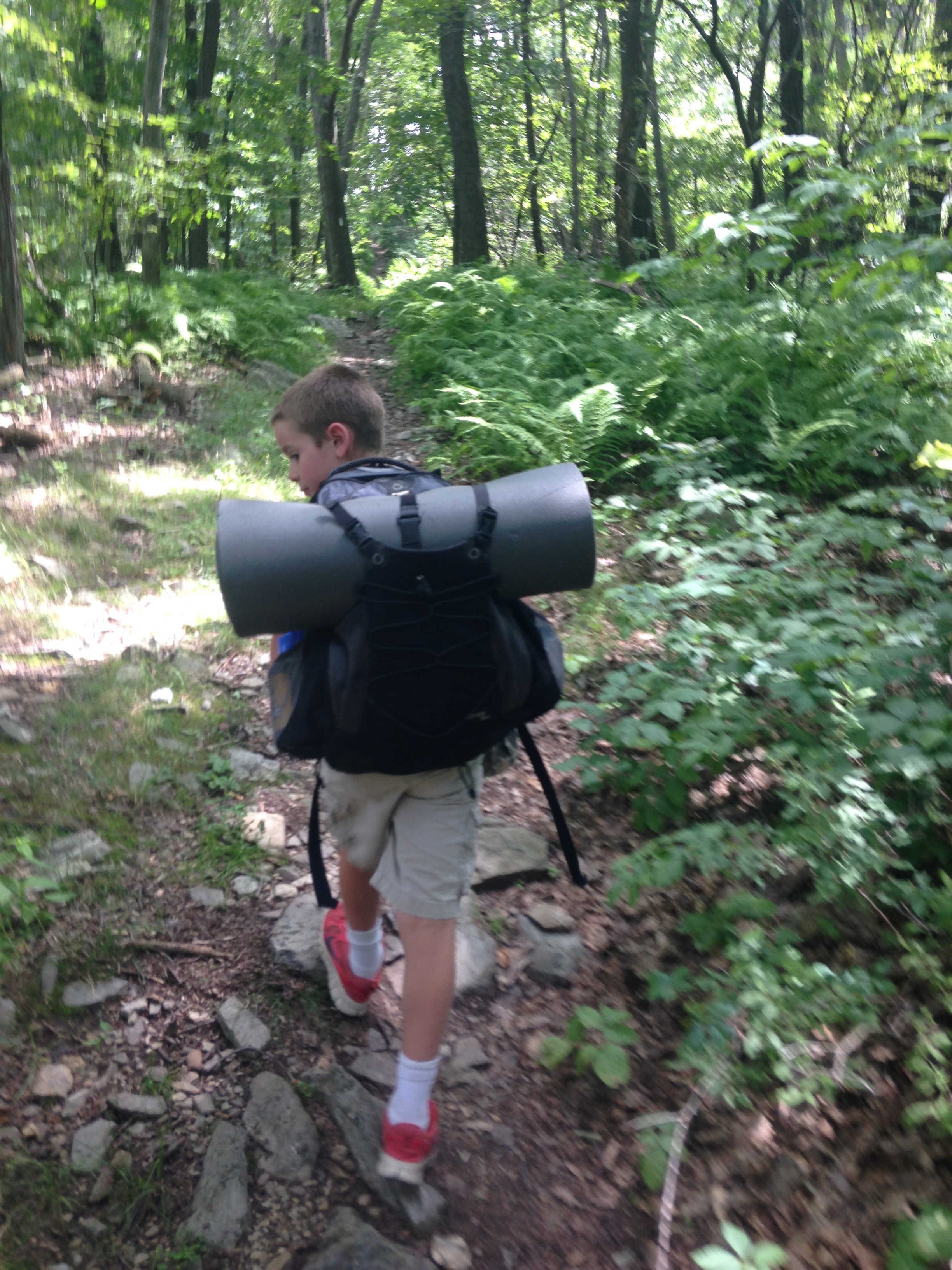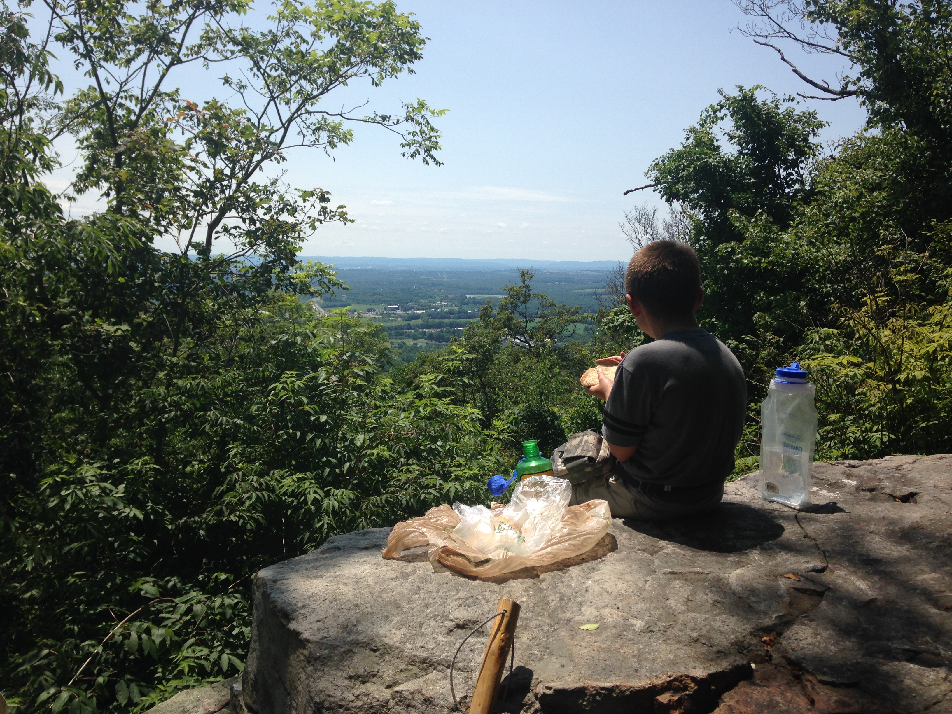 Because for all the dreaming I did about how great it would be to be a dad, it could not touch the liquid sunlight joy of the real thing. Of sitting next to each other on a rock overlooking the Lehigh Valley, sharing a peanut-butter and nutella sandwich and drinking ice-pure water that we’d filled from a spring that morning. Of waking up in the shelter at 1:30 AM and listening to the rain on all the leaves. Hearing the rattle of rain on the roof of the shelter. The small body next to me curled up in the sleeping bag. Magic magic magic.