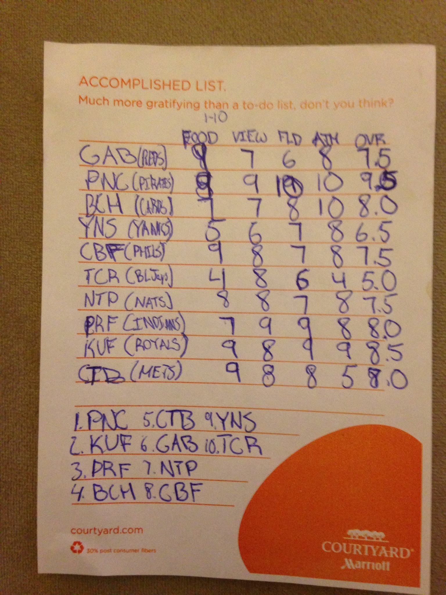 Following the game this weekend in The Great American Ballpark in Cincinnati, our sports editor, Jack Nuckols, produced this document:
