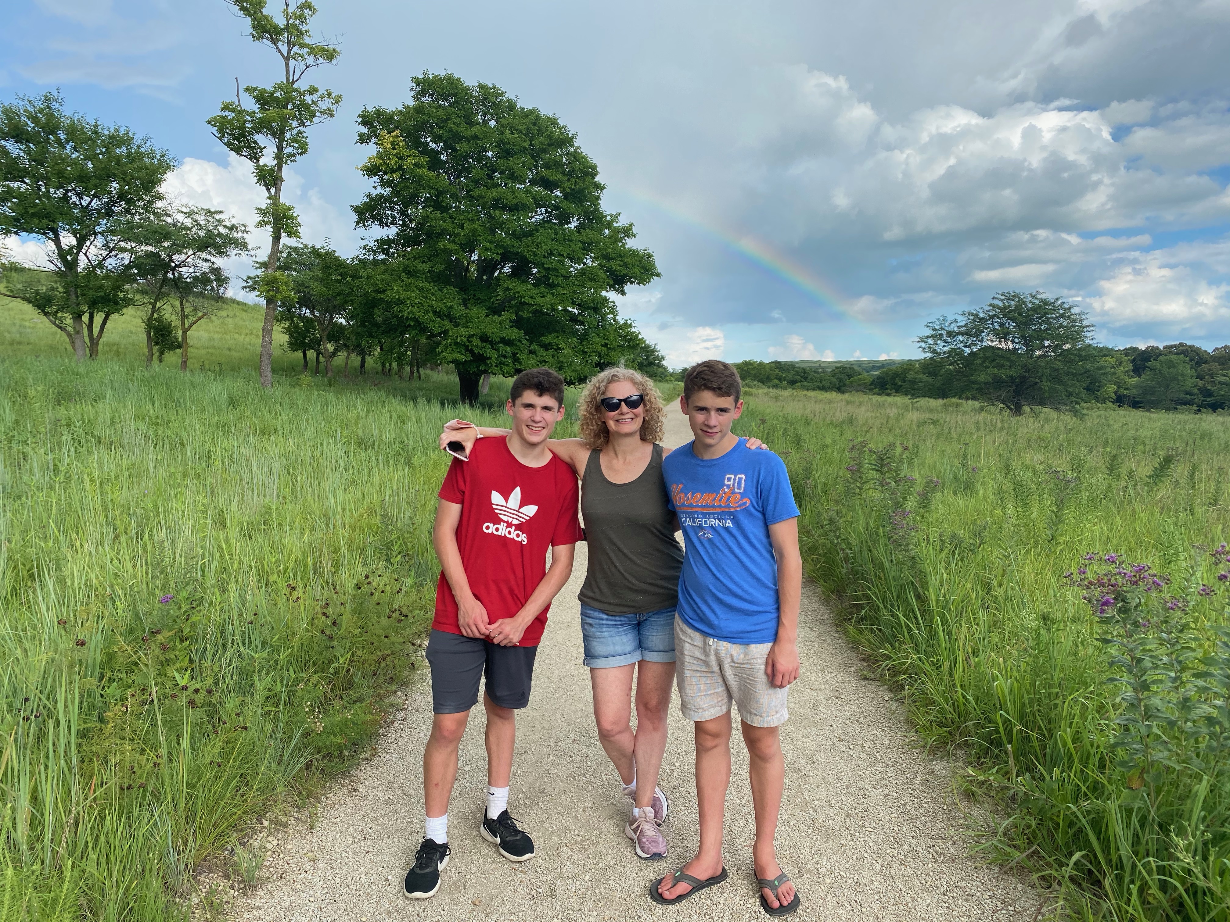 Here’s him with his brother and mom on the Konza Prairie in Manhattan, KS. Note the rainbow.
