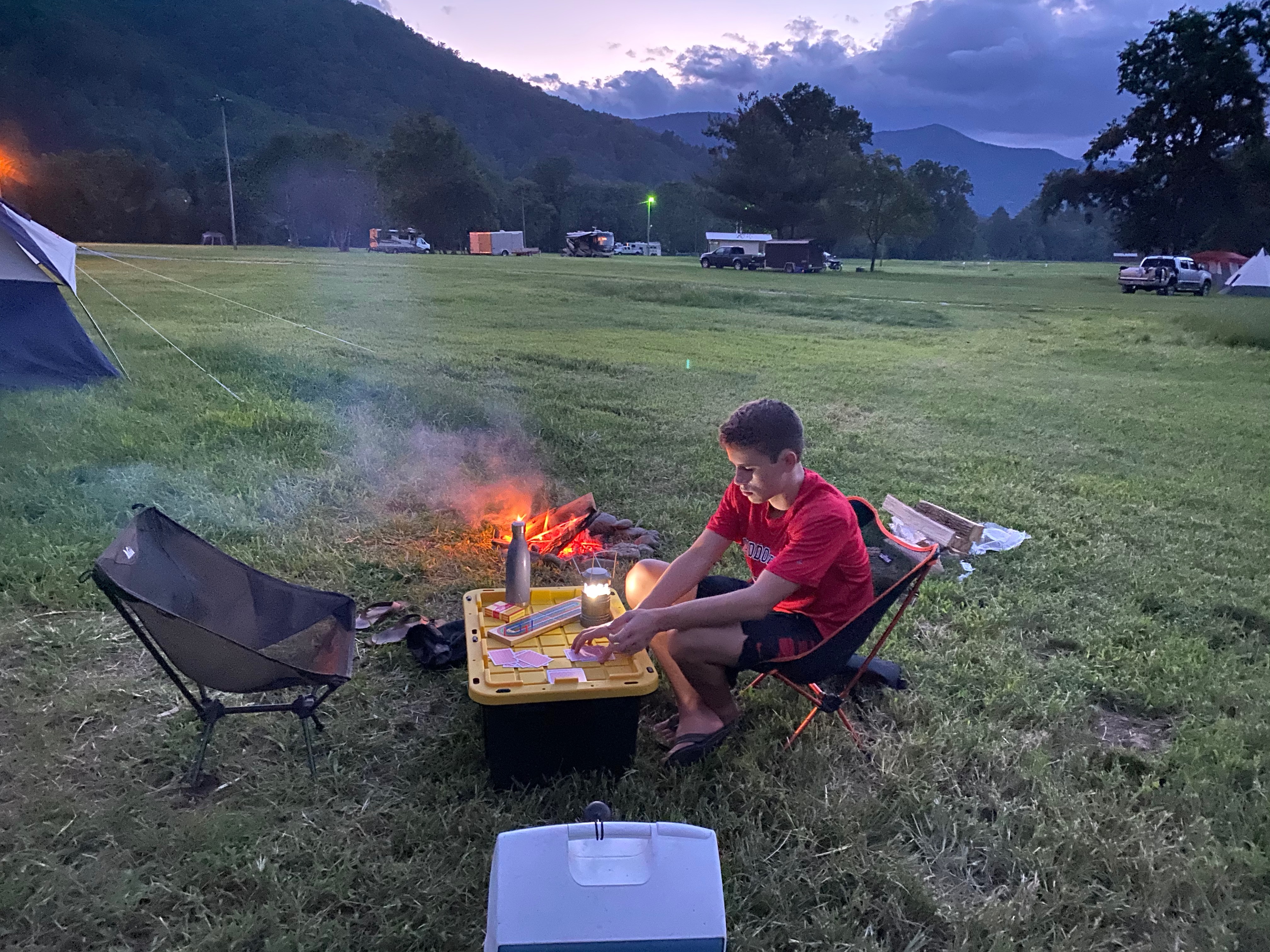 This is us camped out in the farmer’s field near Shenandoah National Park.