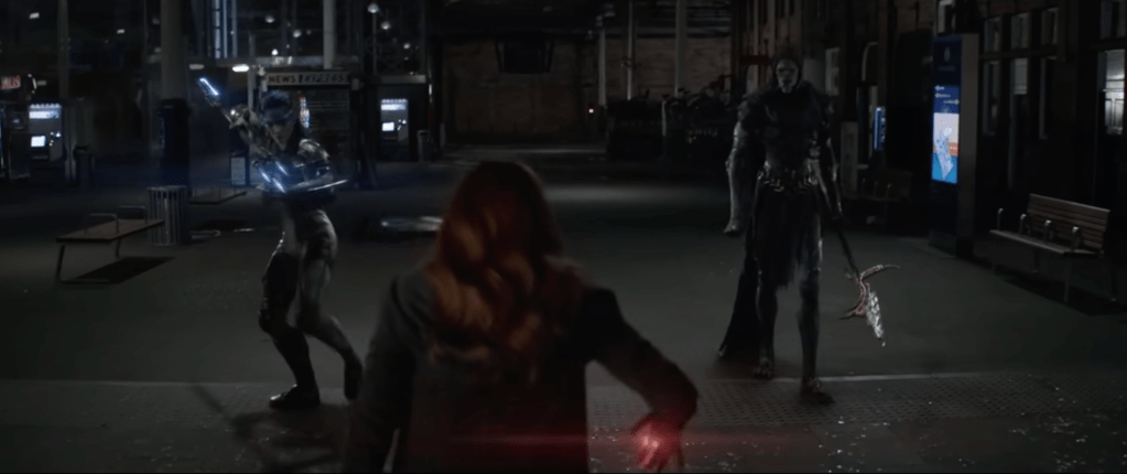 My favorite scene from all the Marvel movies is from Infinity War. The Black Order have ambushed Vision and Scarlet Witch, and the two of them are in big trouble. Here’s the shot.